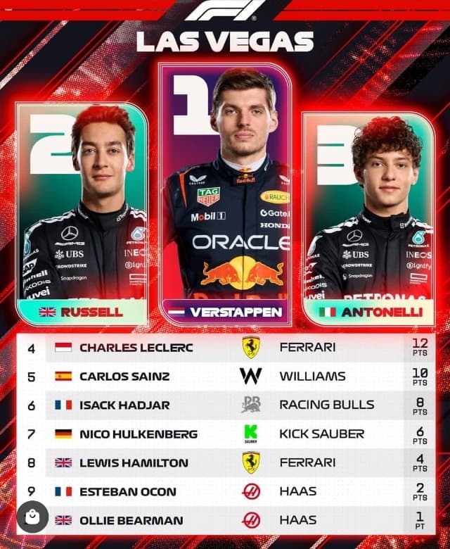 스키드 무게 문제로 맥라렌 듀오가 2-3등 포디움 올랐던거 더블실격처리됨 그래서 후순위인 메르세데스 듀오가 어부지리로 포디움 올라감 ㅋㅋㅋ | 25.11.24 01:48 | | |