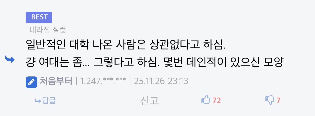 전문대졸인가 그럼? | 25.11.26 23:21 | | |