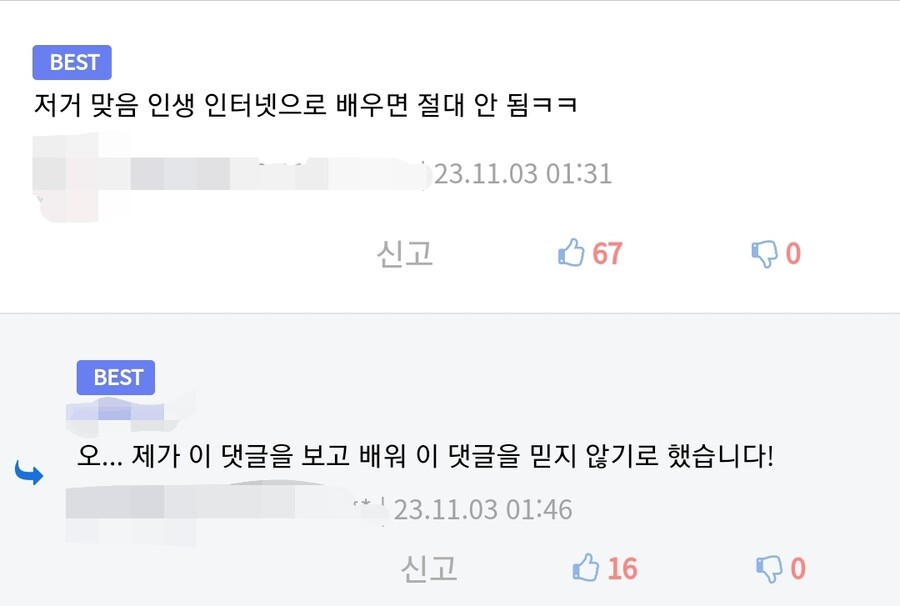 그러니까 커뮤니티에 올라오는 글들에 너무 에너지 쏟을 필요 없음 그냥 질겅질겅 씹다가 단물 빠지면 휴지에 잘 쌓아서 쓰레기통에 버리면 됨 | 25.11.27 07:33 | | |