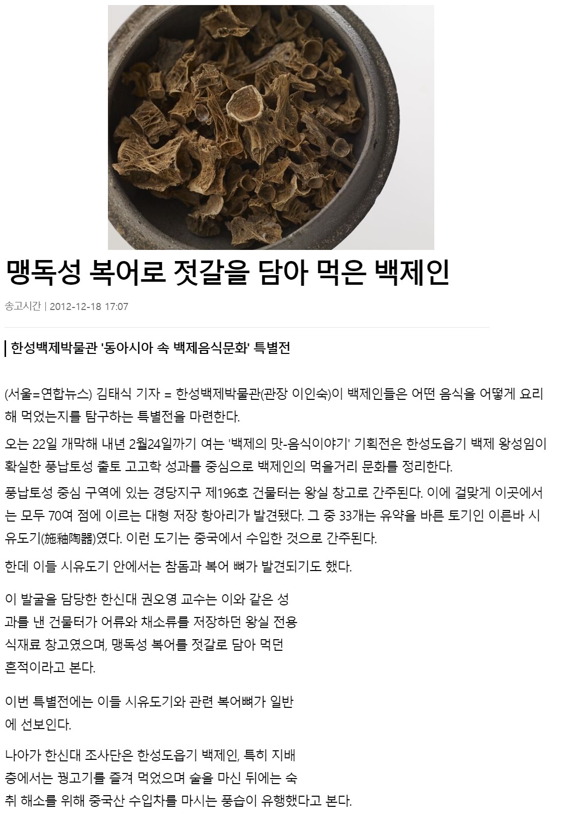 한국 중세 음식이면... 일본 복어 젓갈 비슷하려나?