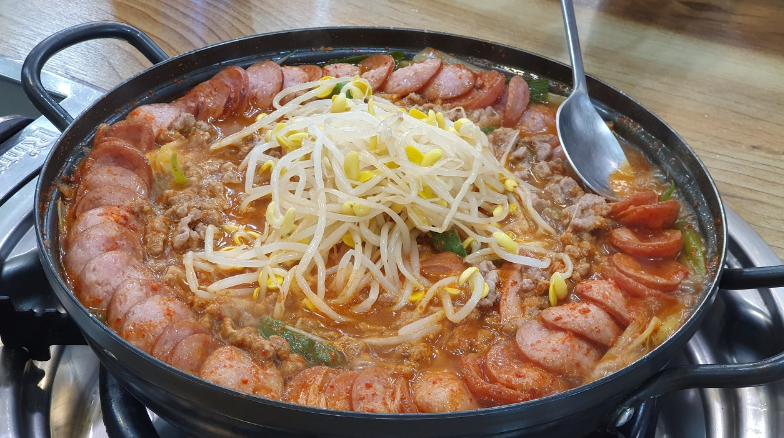 햄과 고기, 야채들이 어우러진 꾸덕한 국물에 콩나물의 시원한맛이 방해되는 느낌이라 싫어함. 부대찌개 집에서 콩나물 들어가는지 물어보고 들어가면 주변 의견묻고서 뺴달라고함