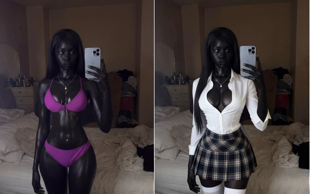 일부 각도에서 손바닥 색상이 갑자기 밝아짐. 이 흑인 모델은 AI임.