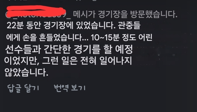 돈 내고 메시 보러 간 사람들이 본 거. 개빡치지.