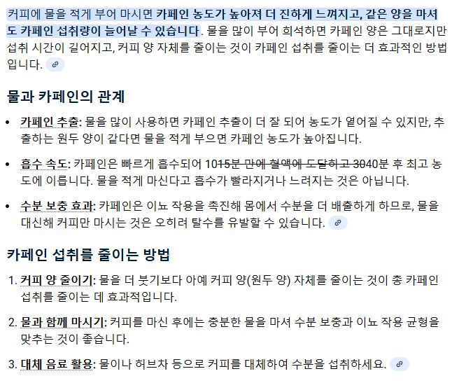 물에 용출되는 카페인이 있을테니 물을 더 많이 타는 쪽이 아주 약간이라도 더 카페인을 섭취하게 될지도? | 25.12.15 21:40 | | |