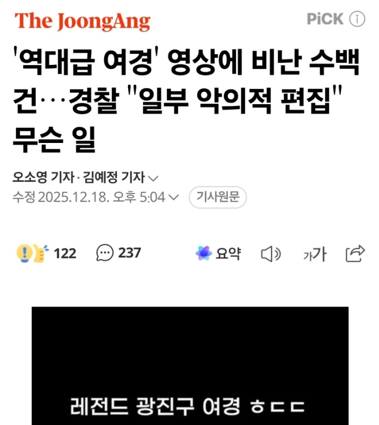 그리고 이 사건은 경찰측에서 말한 걸 들어보면 이야기가 조금 다른 부분이 있어서 신중하게 볼 필요가 있기도 하더라 | 25.12.19 23:07 | | |