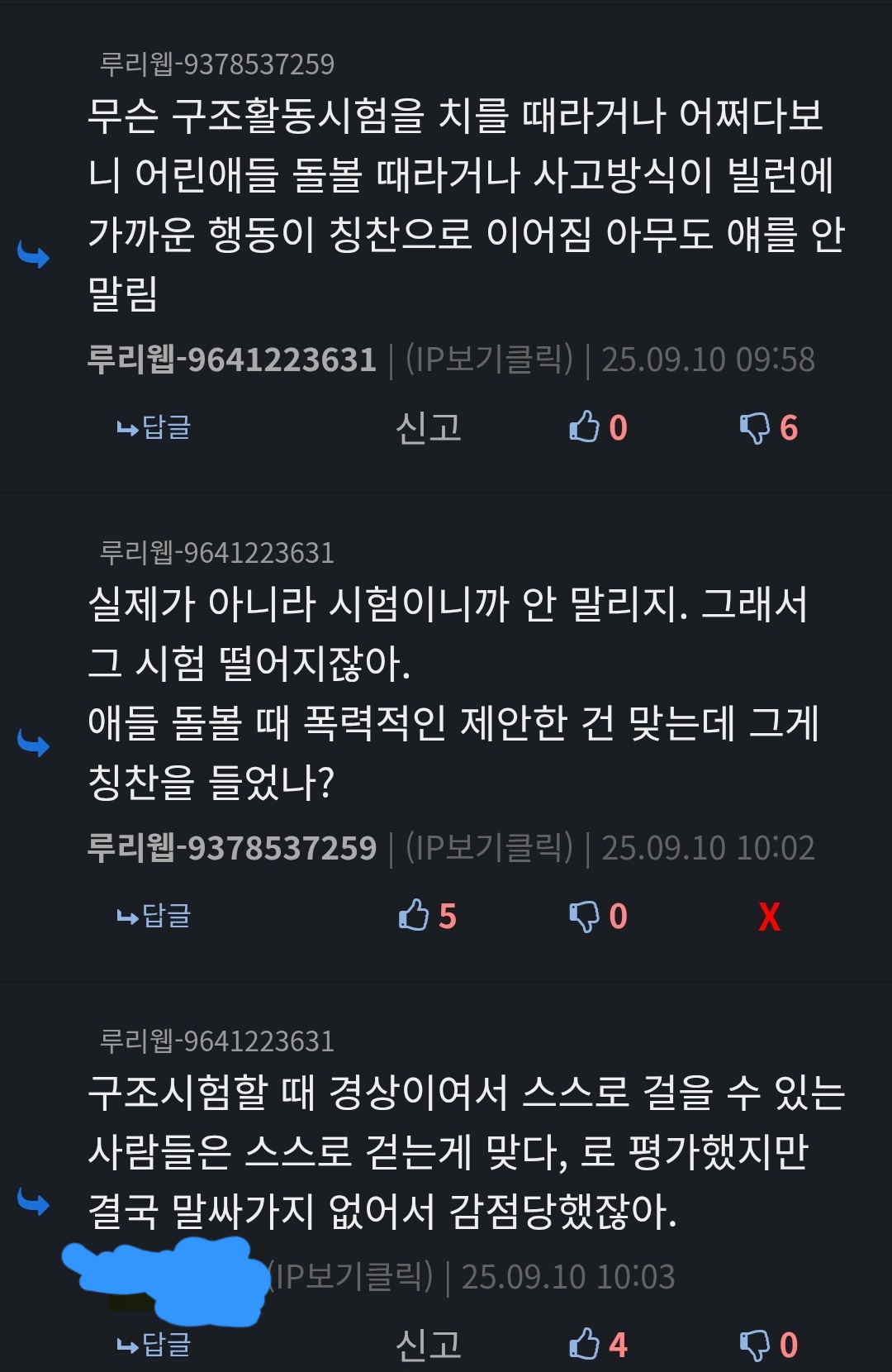 지 능력으로 사람 죽일뻔한 일이 좀 있음 얘가 궤적을 예상해서 위협용으로 쐈다고는 하지만 상대가 어떻게 움직일지 알고 그러나 하면 천재니까로 나오고 교사나 다른 사람들도 역시 바쿠고! 하면서 띄워줌.... 그리고 무개성 위협도 문제 아님? | 25.12.21 11:04 | | |