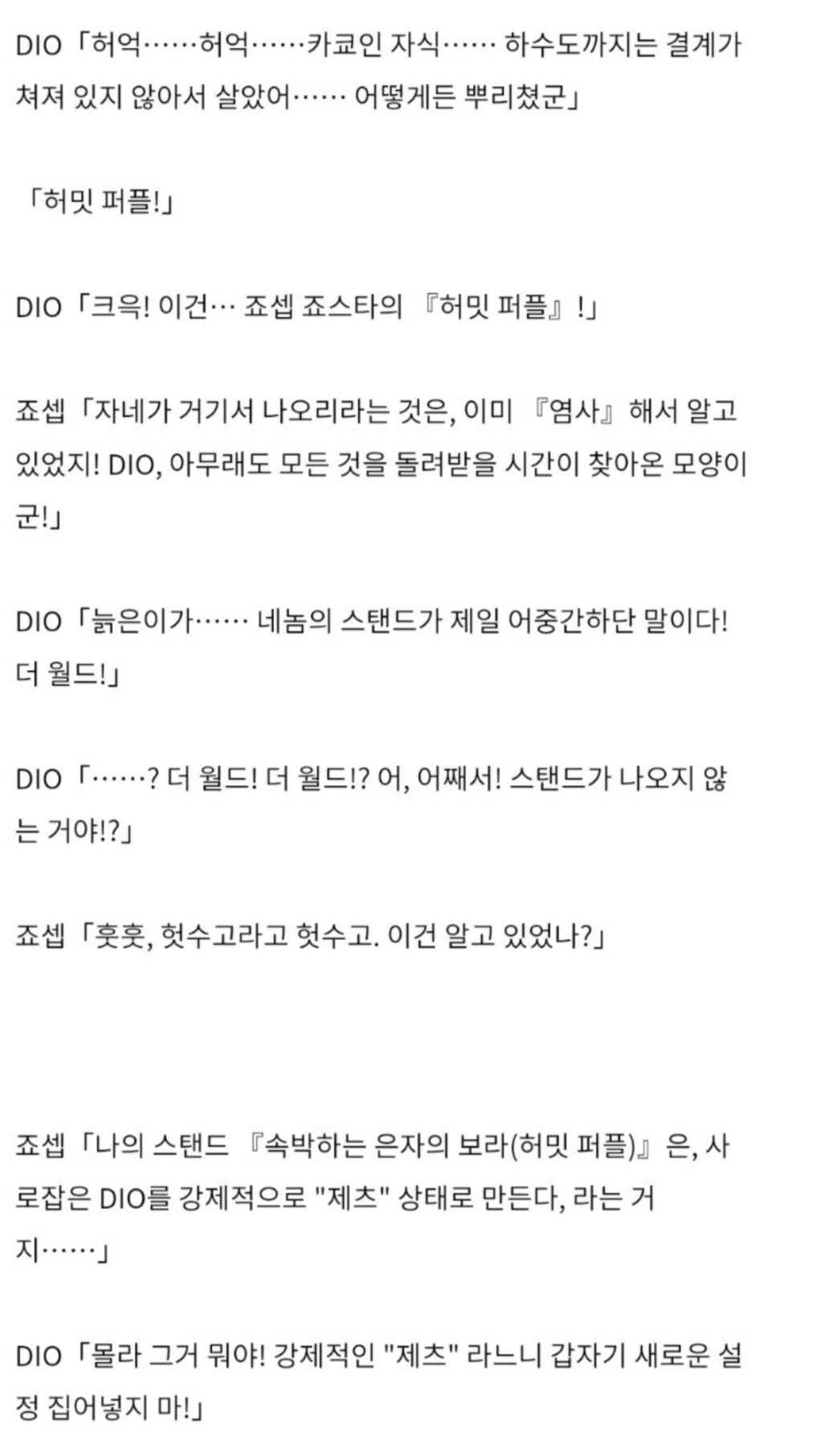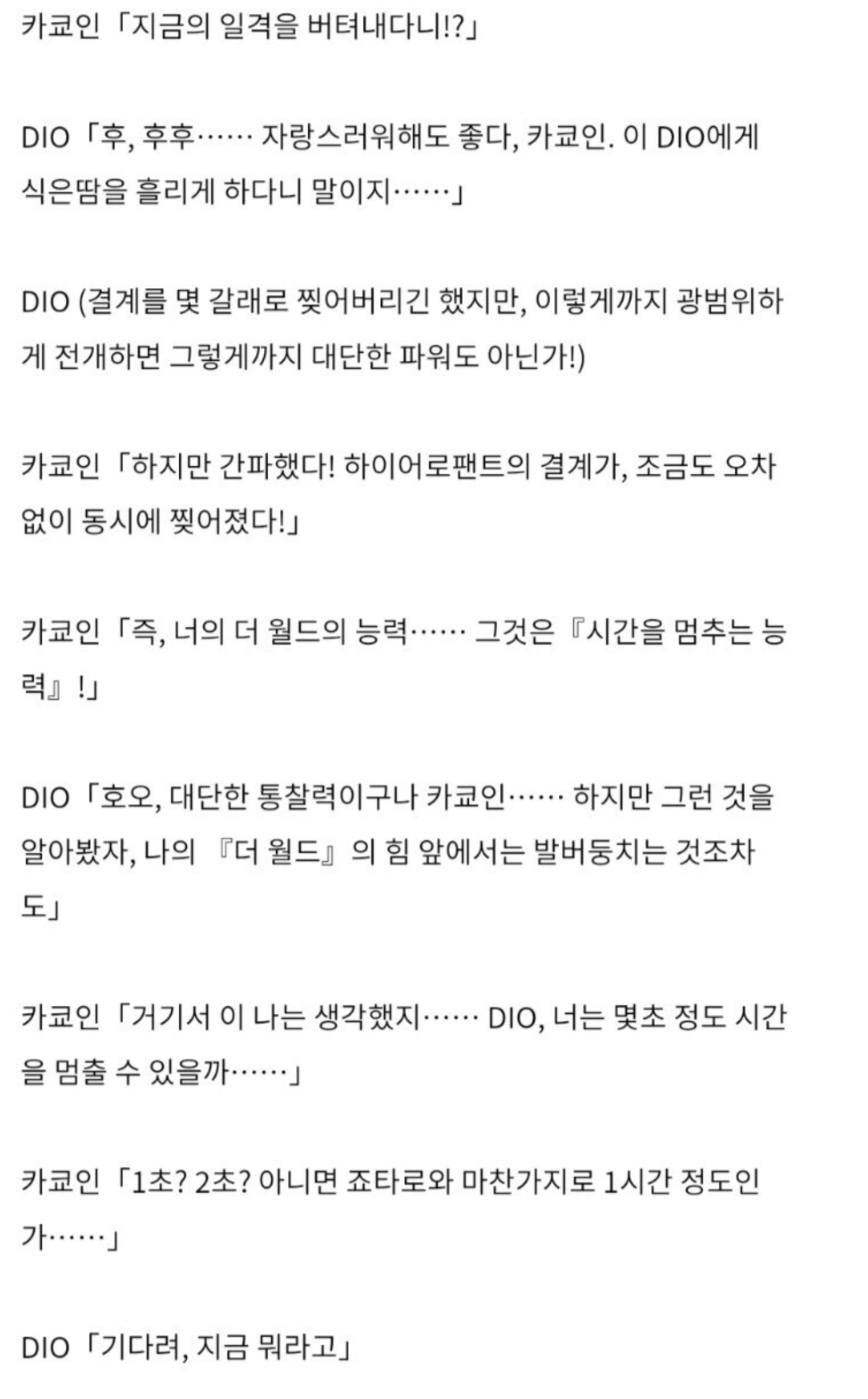 시민들이 모두 죽었다>시민들이 움직이지 않는다>마치 시간이 멈춘것처럼... 핫! 디오의 능력 더 월드의 힘은 시간을 멈추는 능력이었나! | 25.12.30 20:36 | | |