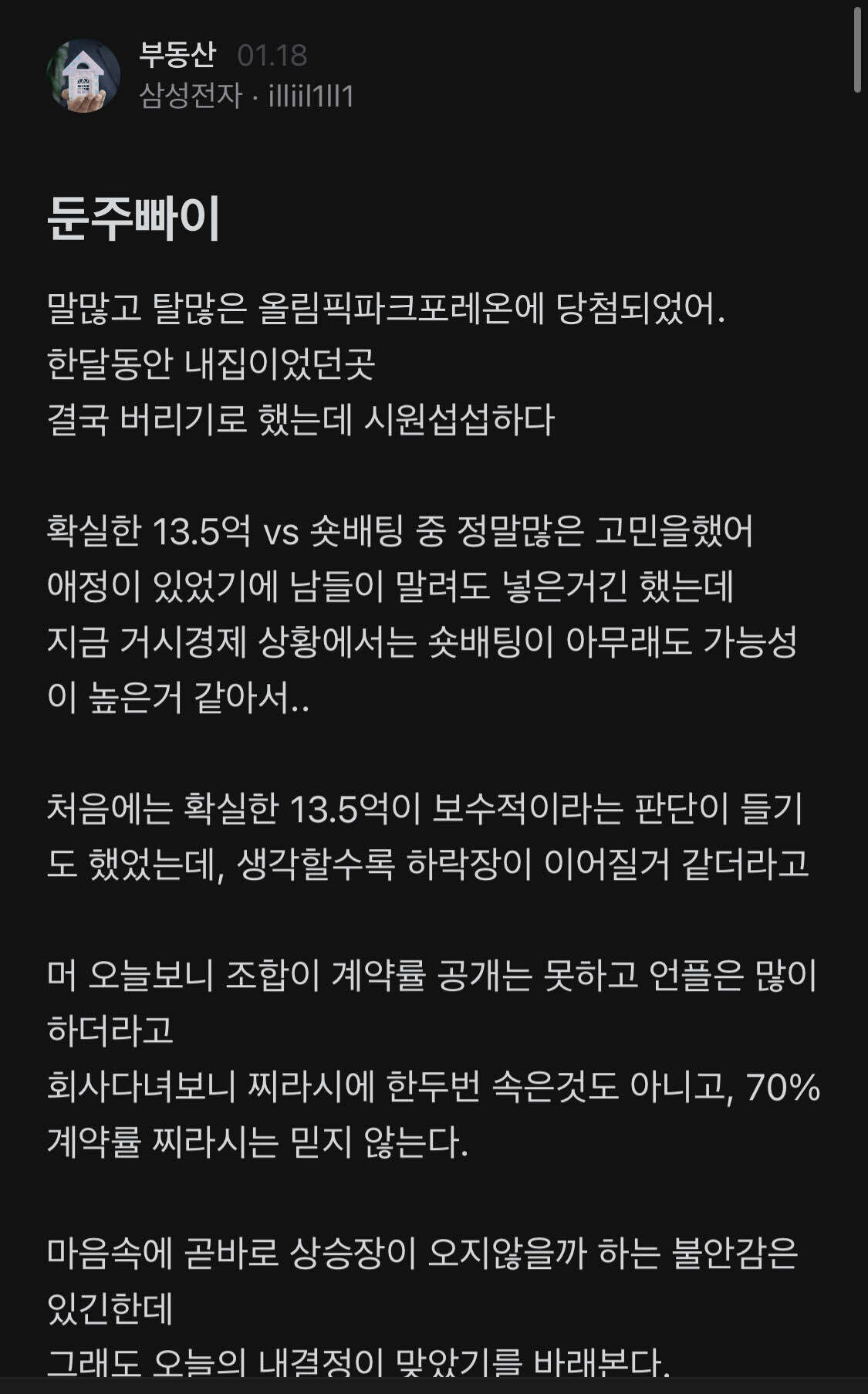 일단 당장 안써도 생활이 곤란하지 않은 5억이란 점에서... | 26.01.06 16:15 | | |