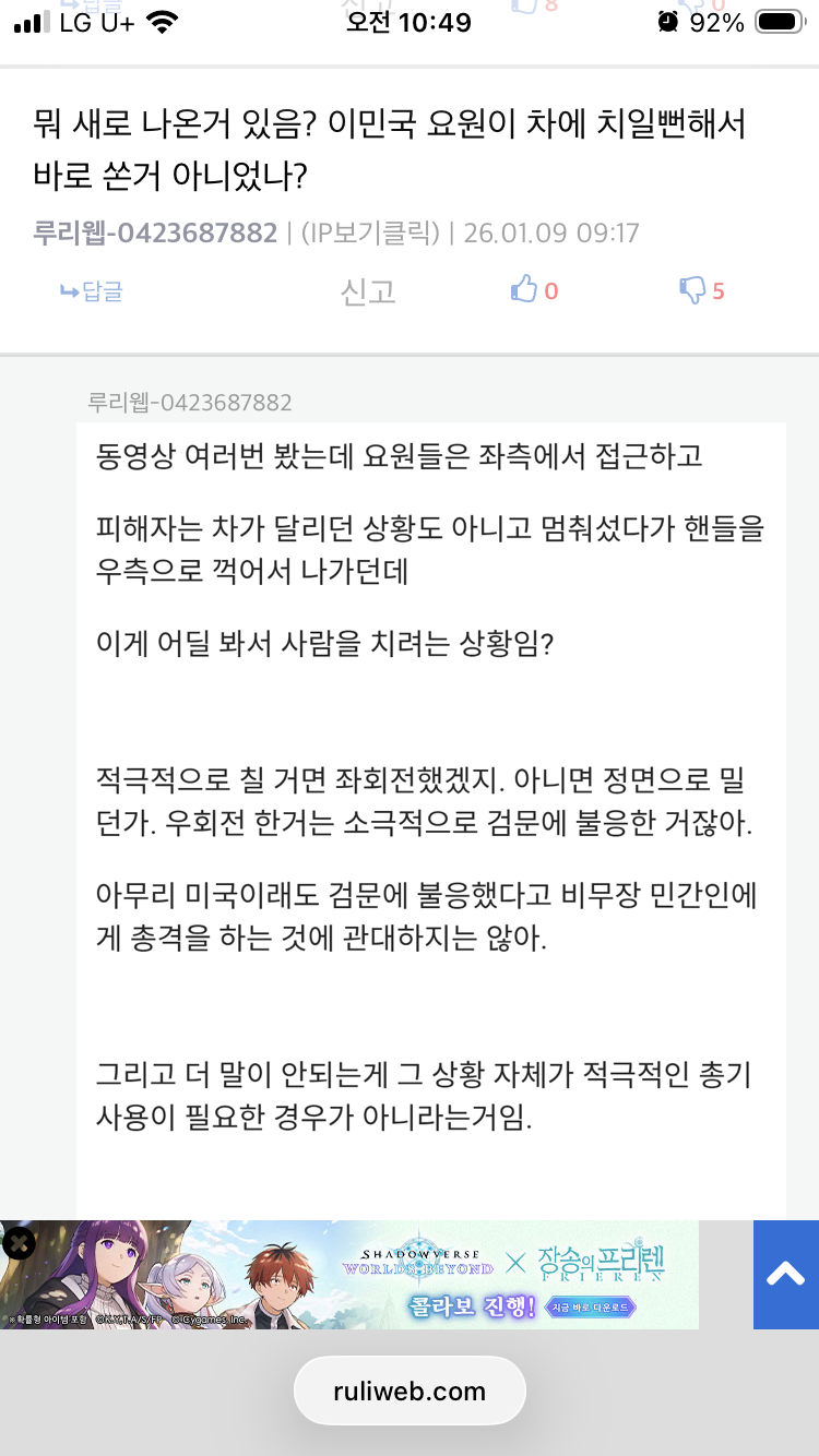 그냥 더 기사좀 찾아봐 그래도 저 여자가 총 맞아도 될 사람이라 생각되면 싸우지 말고 다른 커뮤를 가는게 좋을것 같아 | 26.01.10 14:30 | | |