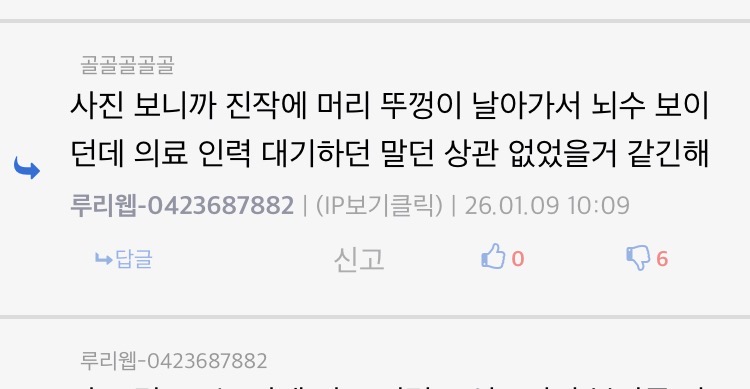 개뻘소리하는 애들 대부분 죄수번호네 진짜 ㅋㅋ 캄보디아 타고 왔나 ㅋㅋ | 26.01.10 14:13 | | |