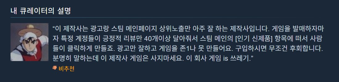 한글화 됬다길래 스팀 페이지 가봤는데....흠...