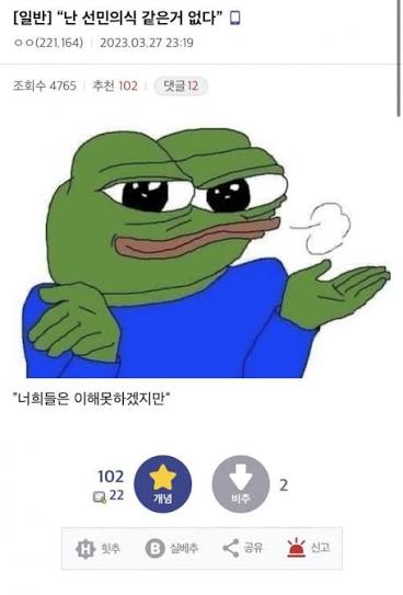 이대남이라고 일반화하지 말라면서 지들도 남들 일반화해서 욕하는걸 비꼬는 모습 | 26.01.28 07:46 | | |