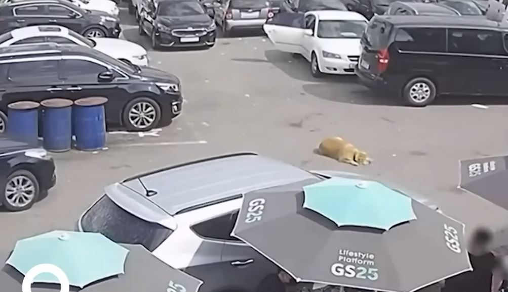 갈리긴 개 주인 잘못으로 끝남 애꿎은 개만 다쳣지 주차장 한복판에 납작하게 누워잇는 개 까지 보면서 운전 하라는건 그냥 차를 없에라는 수준이라