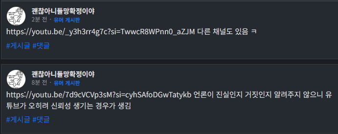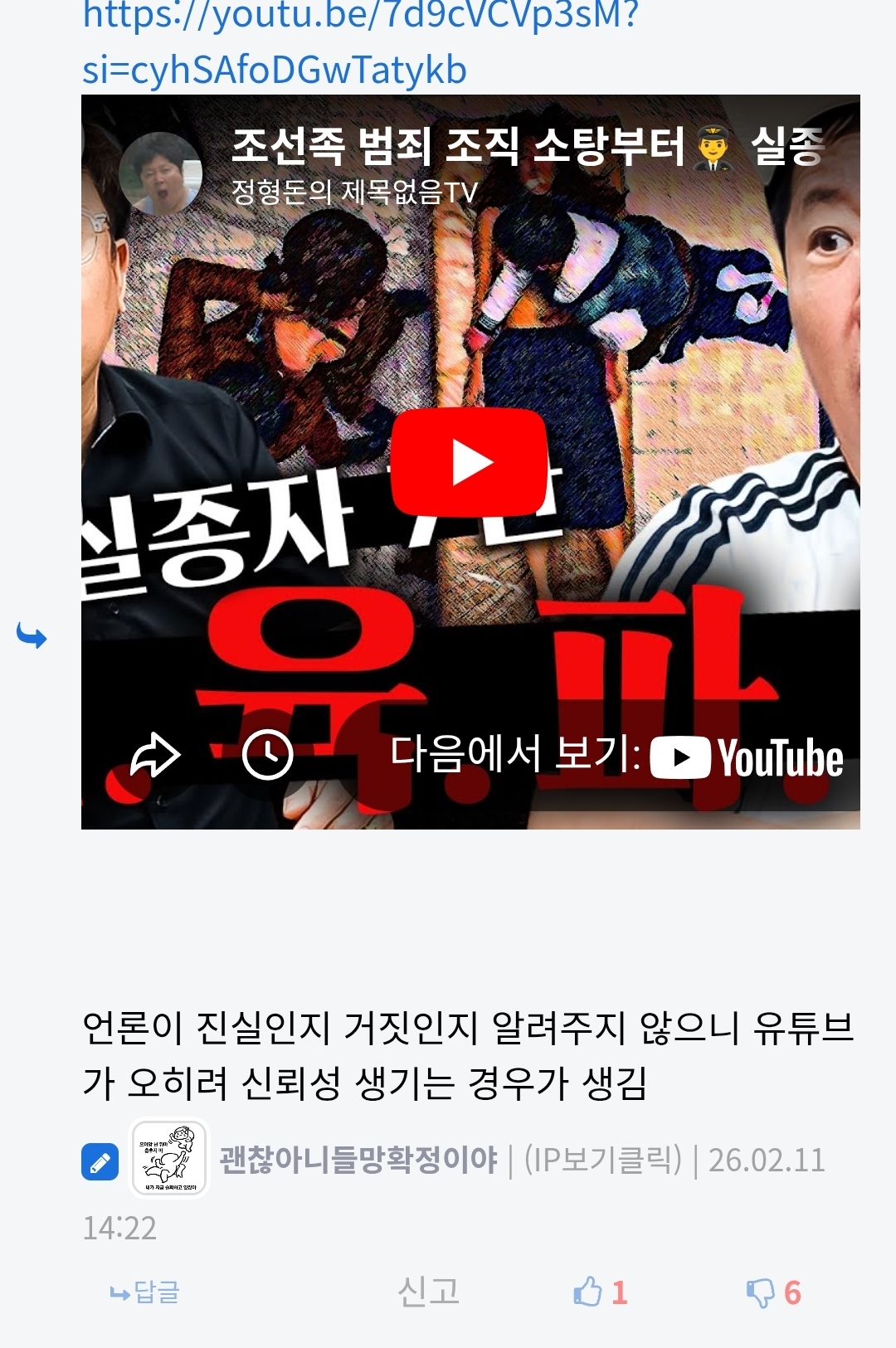 자기가 보는 그 채널의 신뢰성은 어디서 나오는지모르겠음 | 26.02.11 14:31 | | |