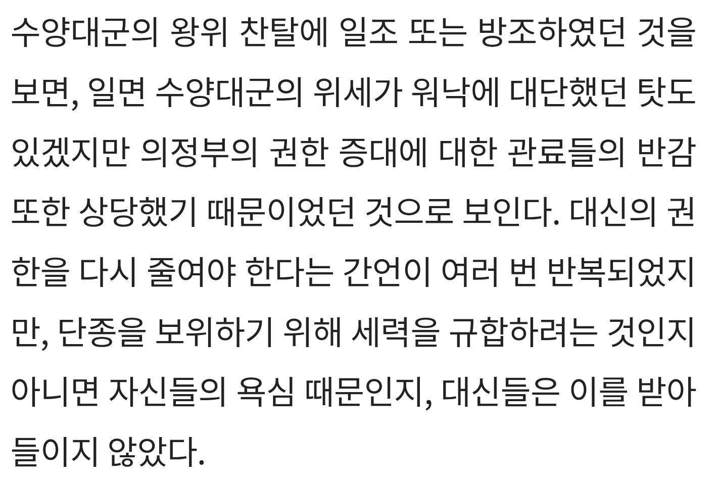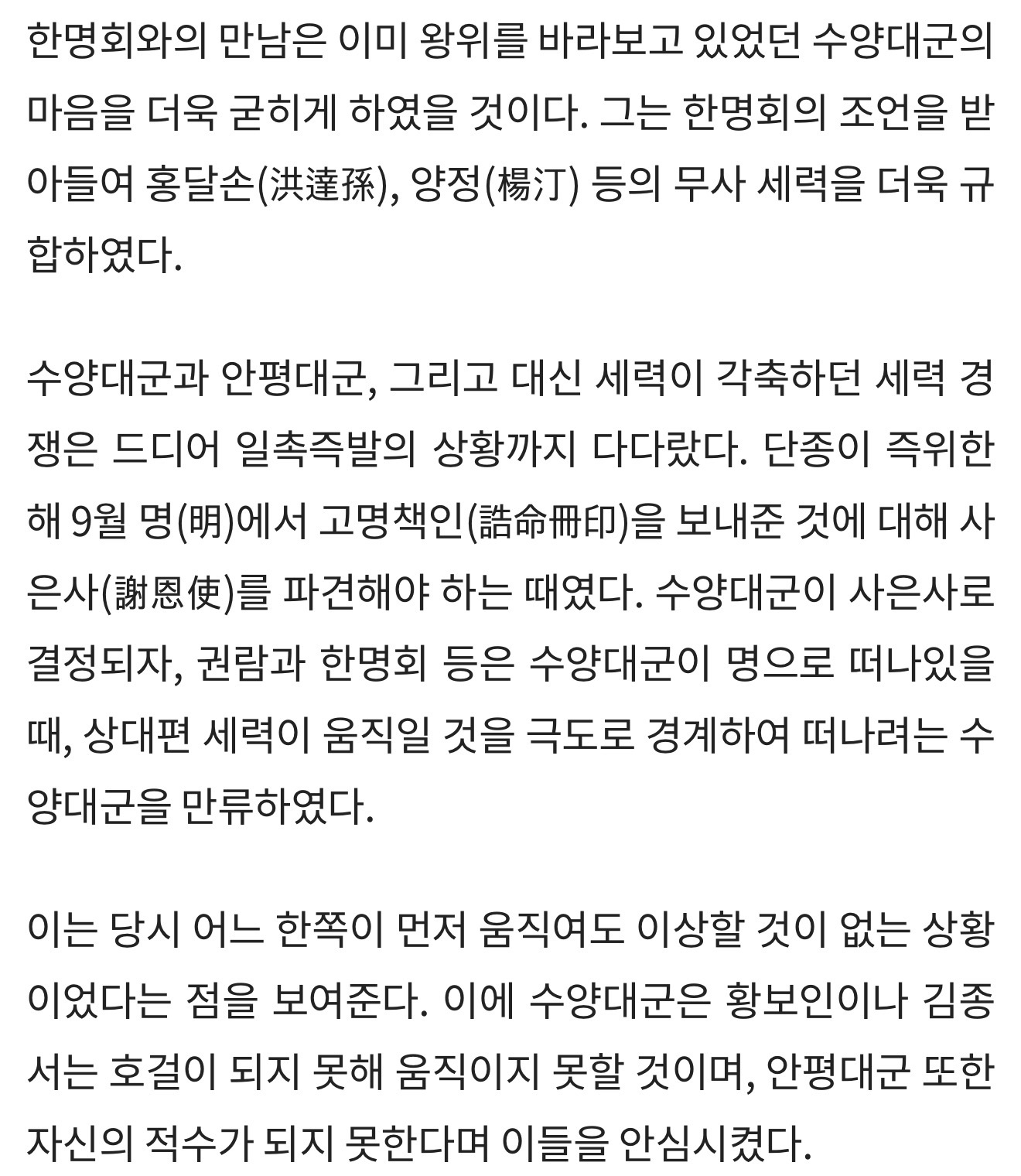 찬탈이랑 정난은 분리해서 보는 게 맞고. 찬탈 이후에 정난의 목표가 왕권확립이 아니라 왕위찬탈에 있다는게 확인되면서 수양대군 이유에 대한 비판이 등장한 거. | 26.02.19 01:39 | | |