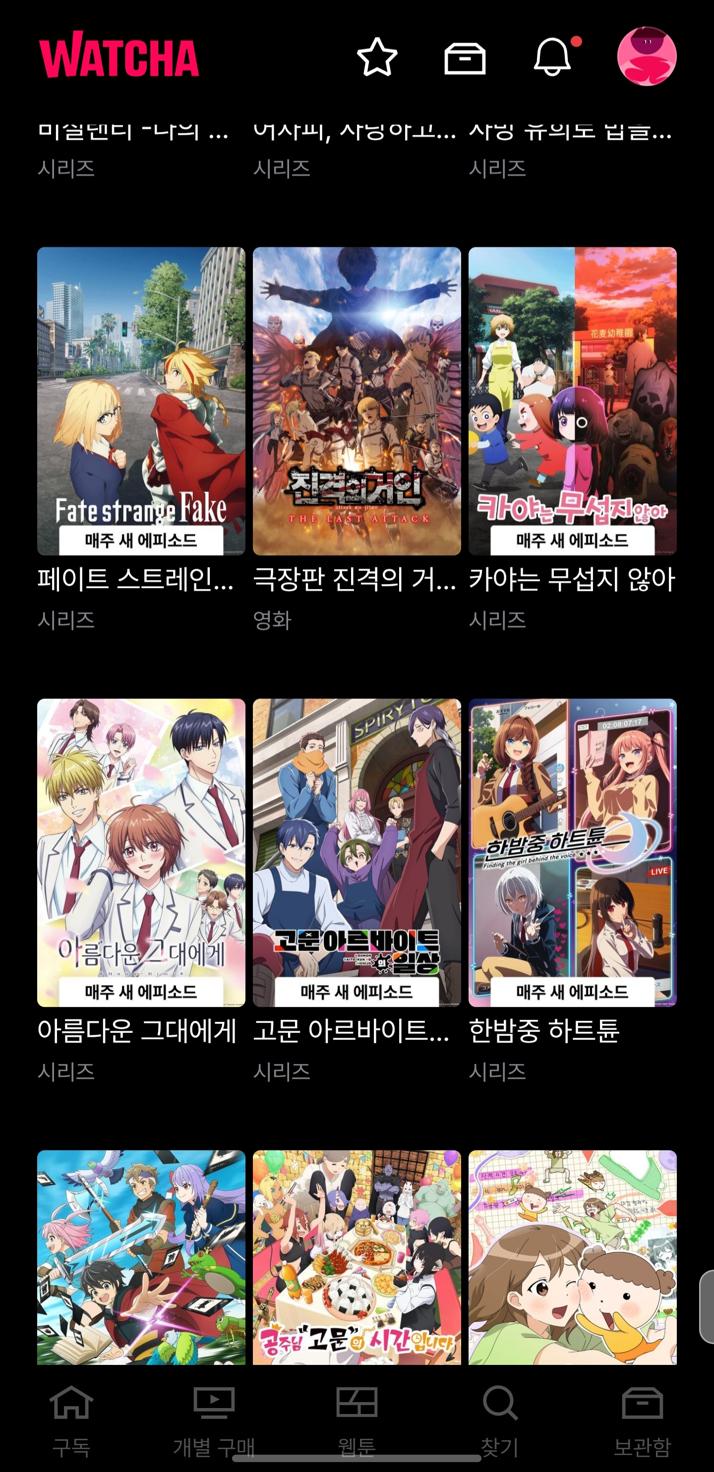 개인적으로 왓챠 못끊는 이유 - 저렴한 PC요금제 가입해놨는데 애니 이만큼 갱신해주는데가 없음
