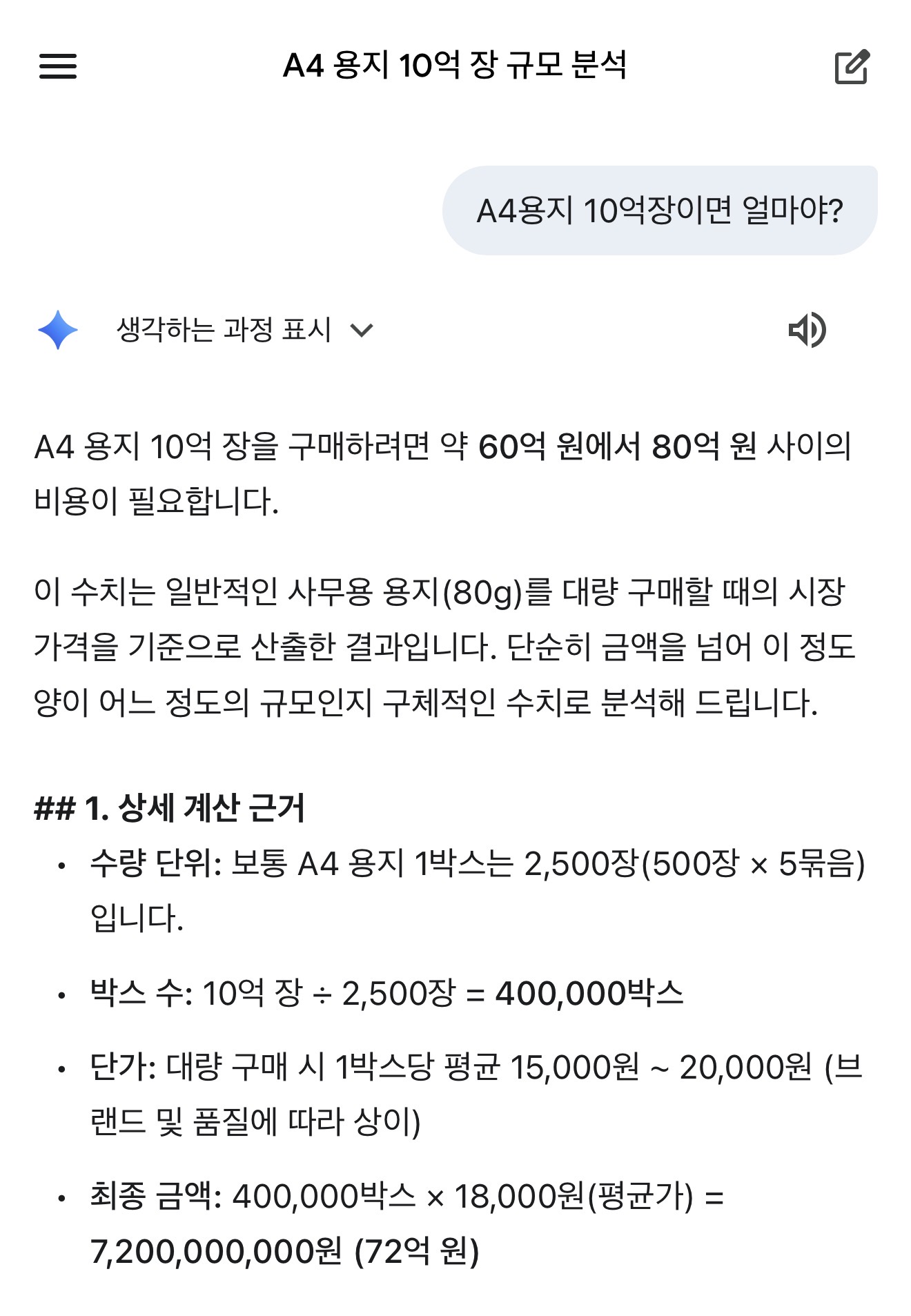 a4 한박스에 500매씩 2500매 인데 10억장이면 40만박스 박스당 4만원씩만 잡아도 16억이네ㄷㄷ