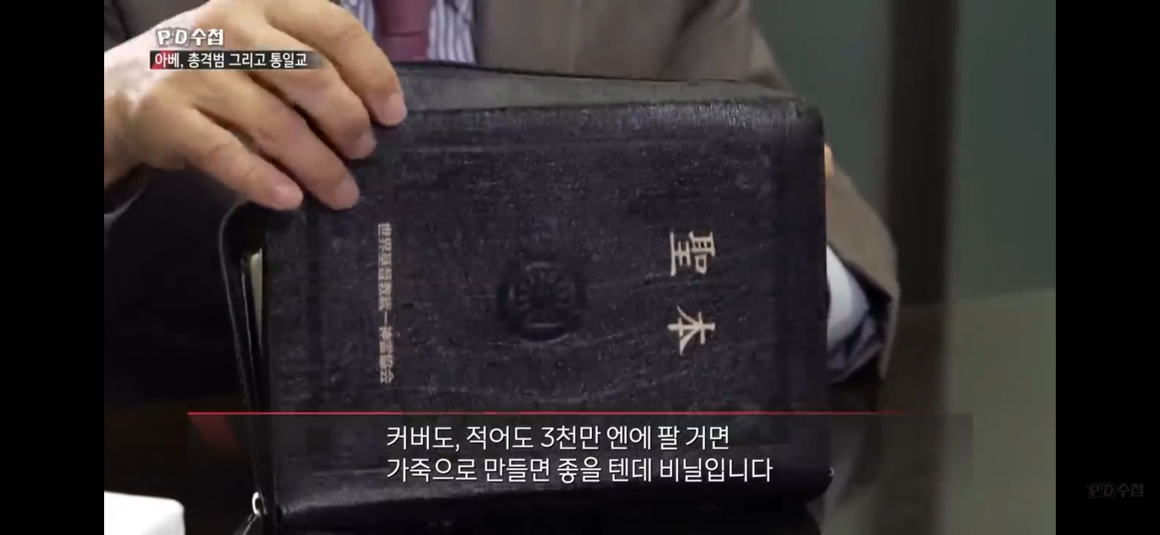 <PD수첩>에 따르면 통일교는 1959년부터 일본에 포교활동을 하면서 신도들에게 다양한 방식으로 갈취를 했다는 것이다. 그 중에 하나가 ‘영감상법’이라고 해서 조상에 민감한 일본신도들에게 “영험한 물건을 구매해 조상의 원한을 풀어줘야 후손이 잘된다”하며 1,600만원짜리 도자기와 1억원짜리 다보탑, 통일교 경전은 3억원에 사도록 강매하는 것이다.