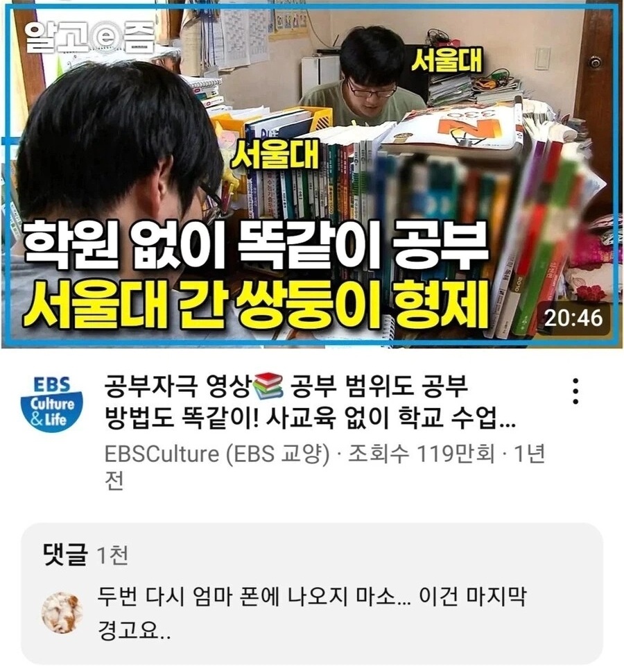 하지만 저점평가인 수능 1등급 정도는 재능없어도 할 수 있다 라는 강의에 아무리 열심히 해도 유전자빨이다 할 수는 있겠지, 한과목만 몇년하면 등등으로 유전자탓만 했던 애들이 한가득이었지 ㅋㅋㅋㅋ 상대평가라서 1등급 못한다는 요즘 교육열 상태 모르고 자기시절 생각하는 사람들도 한가득이었고 | 26.02.24 12:46 | | |
