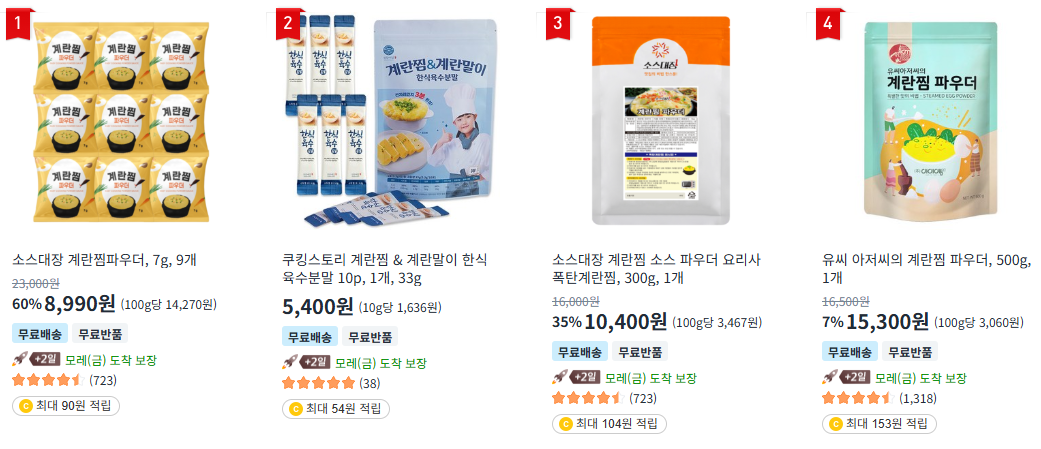여담으로 계란찜의 경우는 아예 전자렌지로 계란찜 만드는 용으로 양념+폭신하게부풀리기 용도의 분말을 흔히 판매함. 작은 뚝배기가 있으면 아예 고깃집 폭탄계란찜도 가능해짐.