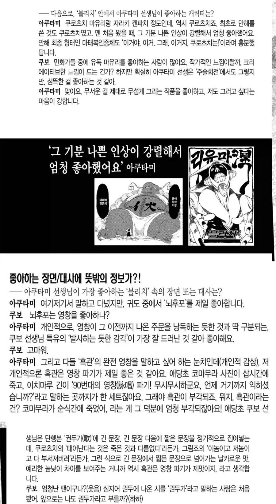 블리치말고도 그냥 만화광이니까 좋게 봐준 거 같기도 하고