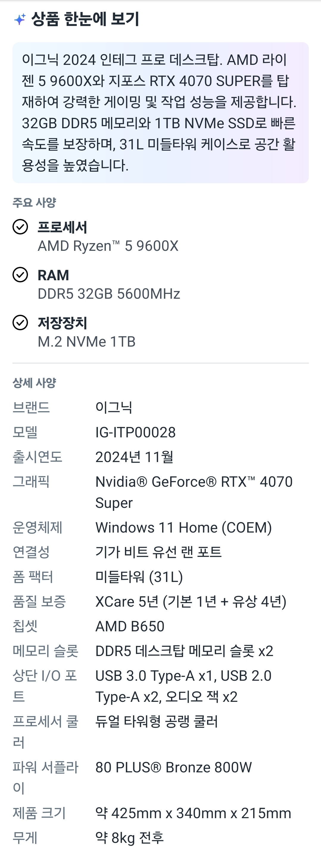 32기가 램, 1TB SSD, 9600X cpu, 4070 super 그래픽카드 | 26.03.13 02:12 | | |