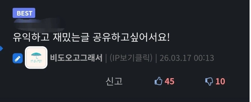 비추 많이 박히네 나도 저런거 요즘 좀 많이 올라온다 싶긴한데 규칙이 이런거라 어쩔 수 없지 않나 싶은데 기분 나쁘다고 서로 비추박으며 우리끼리 싸울게 아니라 규칙쪽을 손봐야 되는거 아닌가 | 26.03.17 03:01 | | |