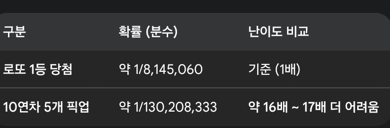 로또 1등은 0.0000123% 로또 1등보다 확률이 낮음