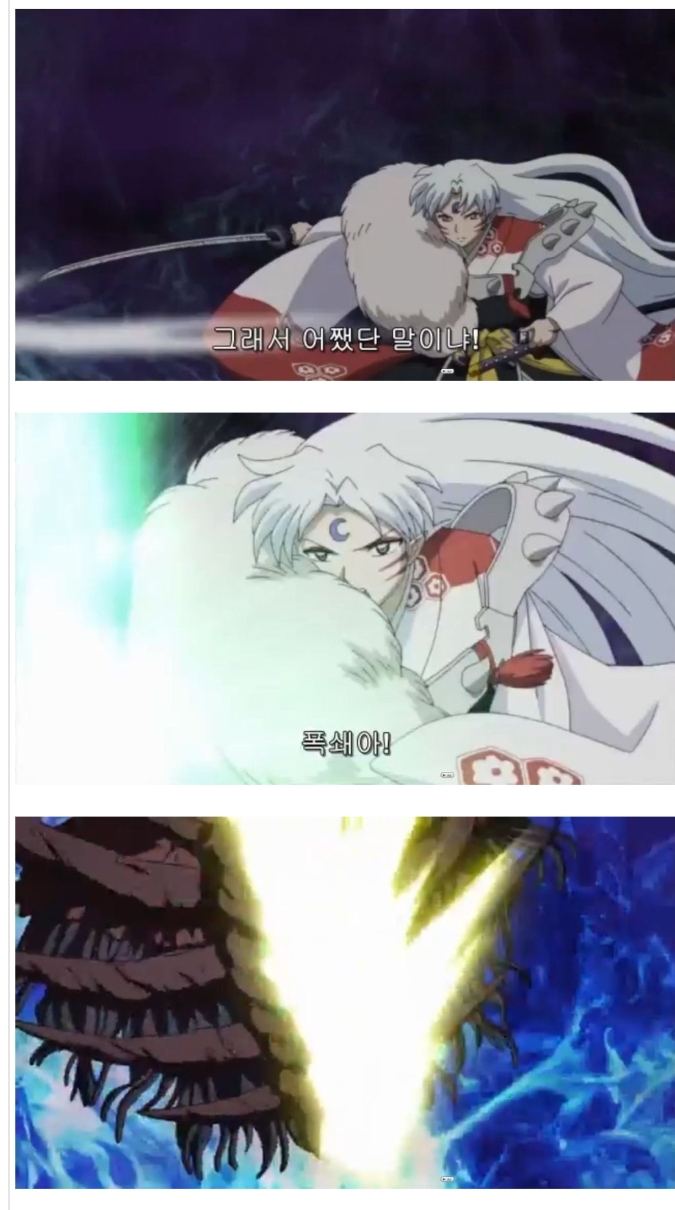 셋쇼마루 : 뭐라고오? 이 새ㄲ.... 이누야샤 : 니가 옛날에 한말이잖아 이 븅신같은 형놈아!!