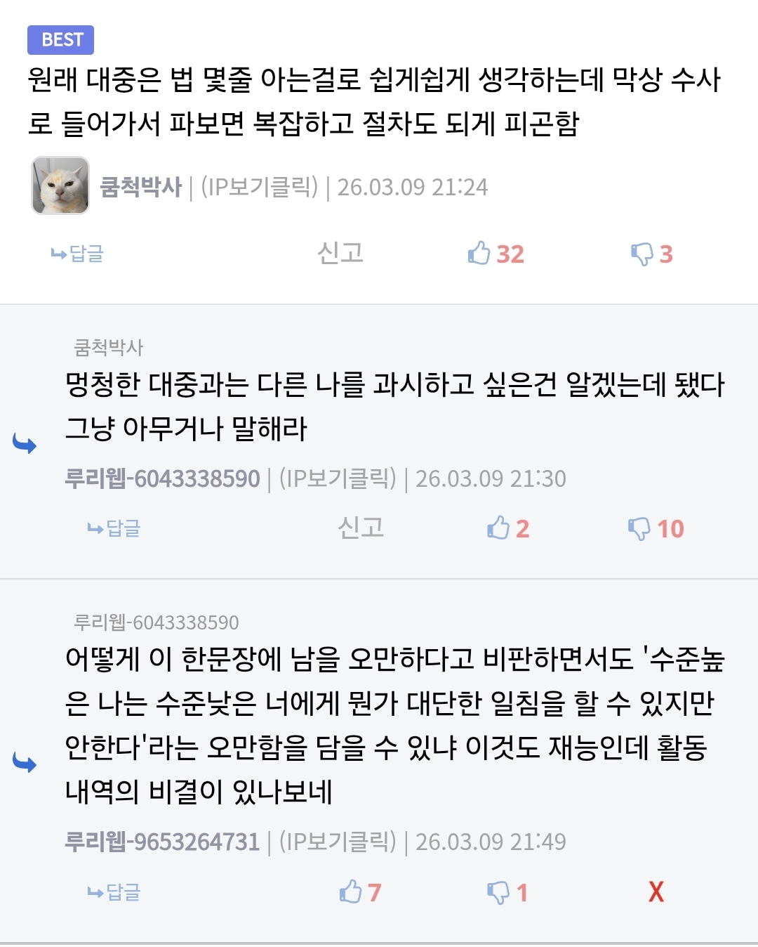 야아.. 렉카질 한 것 뿐만 아니라, 여론전으로 사람 담근 전적도 있구나? | 26.03.21 14:36 | | |