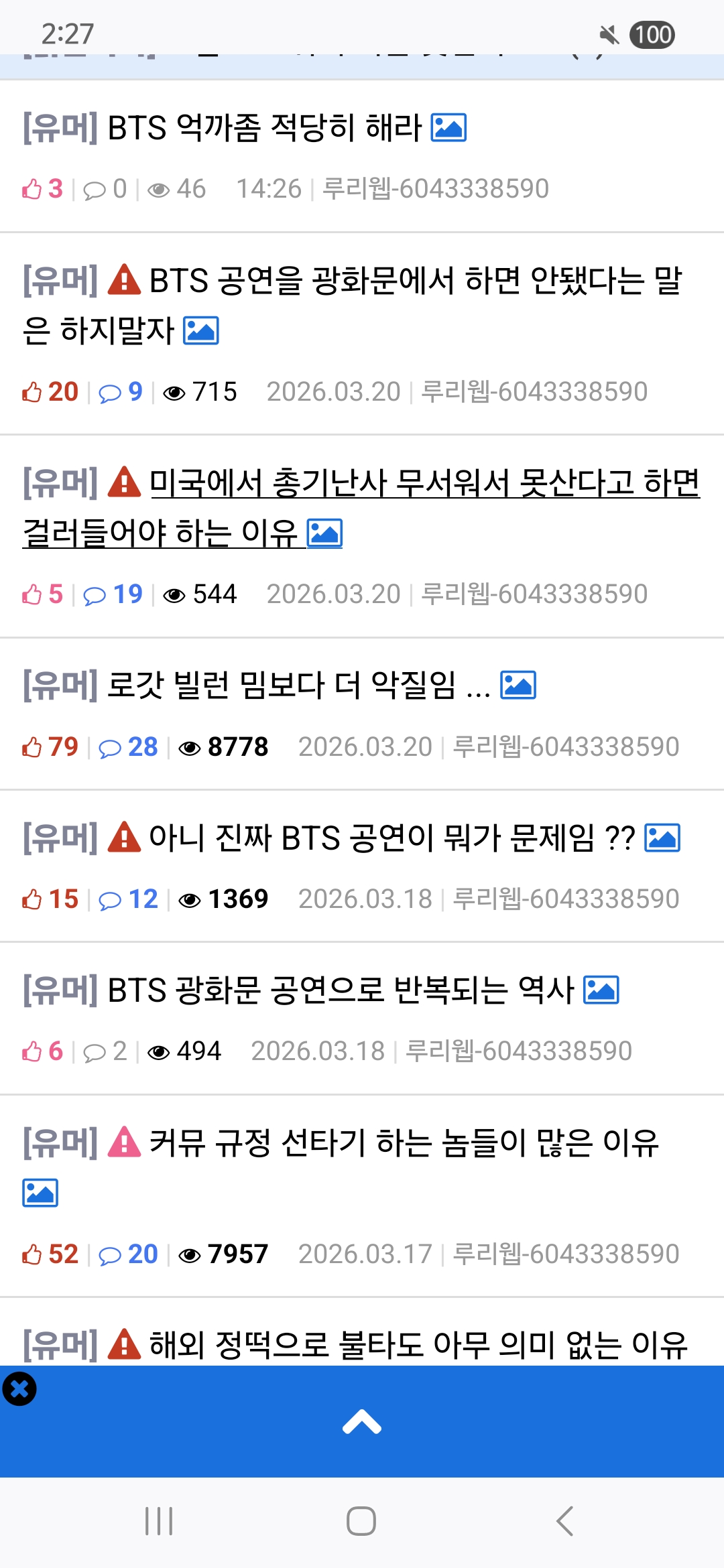 방탄이 광화문에서 공연하든, 거기에 사람들이 불평을 하든 아무런 생각은 없는데 너는 좀 뭐라 한 소리 들어도 된다 생각해 | 26.03.21 14:30 | | |