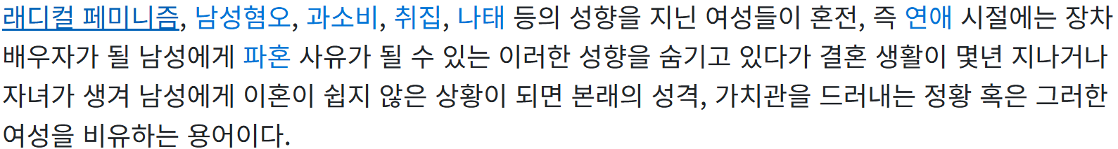 처가에 대한 열등의식이 항상 존재할테니 장인 장모가 농담으로 얘기해도 진지하게 듣고 '처가에선 날 이리 무시하는구나' 하고 스택 쌓다가 부부끼리 사소한 말다툼이라도 생기면 바로 과거 벤츠부터 해서 히스토리를 쫙 읊으며 자기 무시한 연대기를 달달 말할듯 | 26.03.27 20:38 | | |