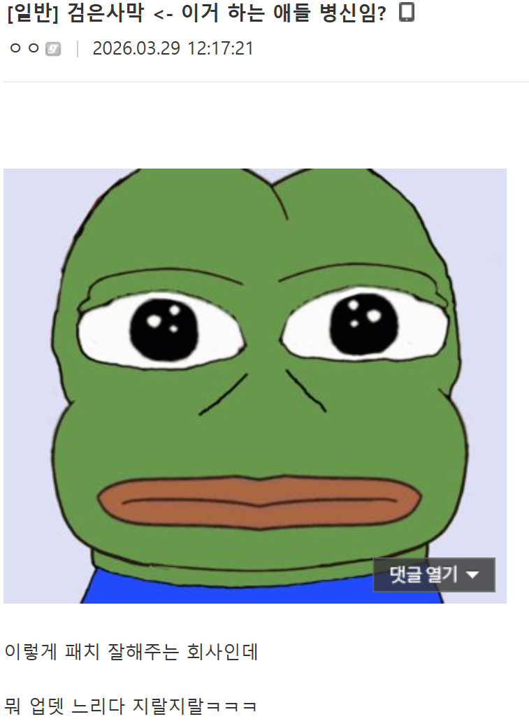 이 댓글 보자 마자 빵터짐 ㅋㅋㅋㅋㅋㅋㅋㅋㅋㅋㅋㅋ | 26.03.29 16:23 | | |