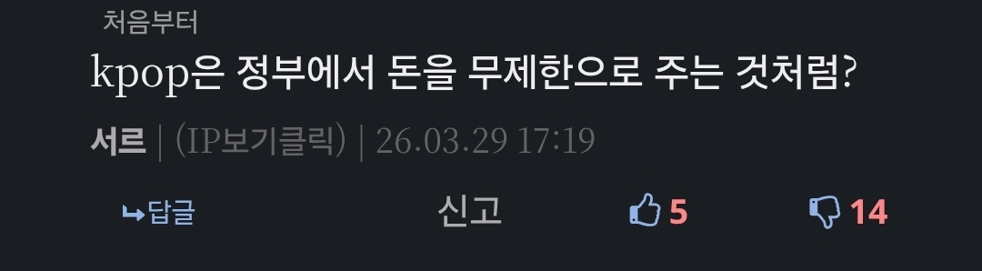 kpop은 정부에서 돈을 무제한으로 주는 것처럼? | 26.03.29 17:19 | | |