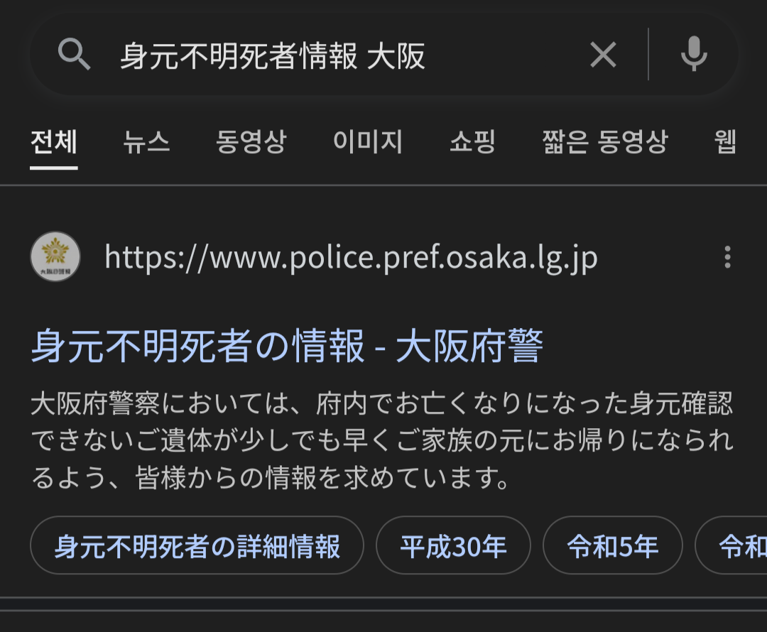엥? 그냥 신원불명사상자 정보 올린것 뿐 아님? 저런거 다른 다 하는걸로 아는뎅...? 오사카도 당연 하고 있음