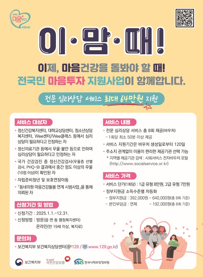 대상자 보니까 먼저 의료기관 이나 국가 검진에서 상담이나 불안증 인정 받고 소견서 받은뒤 신청 가능한것같네요 | 25.07.22 05:53 | |