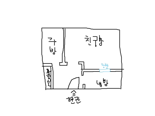 내 방에 문은 없고 친구방과 창문으로 연결돼서 숨을 곳도 없는