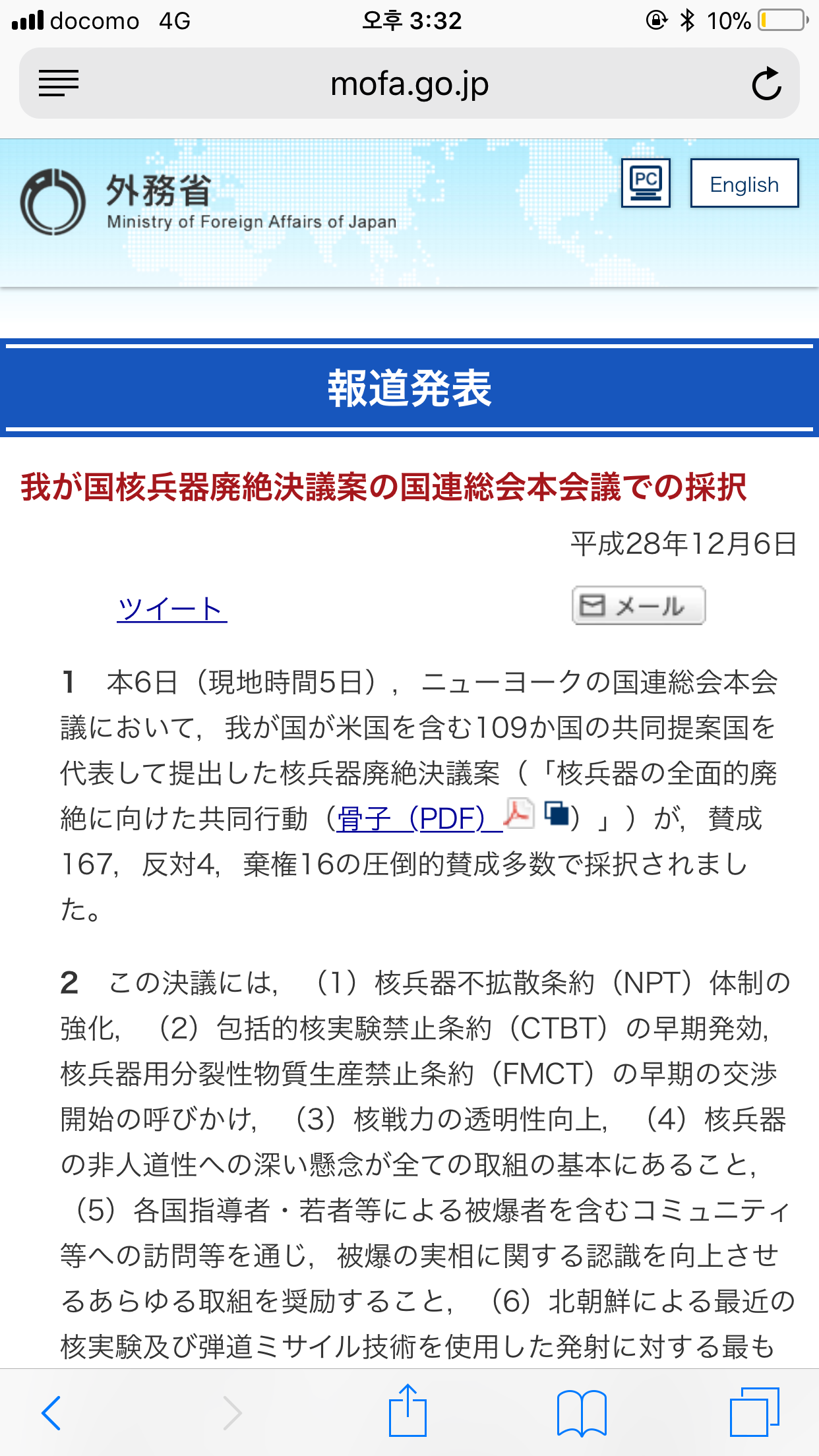 에펨코리아에서 다른분이 올린 영문자료도 있음 확인바람 LiftCO 2 분 전 작년 같은 결의안 기권 팩트 들고 온다. 작년 결의안: United action with renewed determination towards the total elimination of nuclear weapons A/C.1/71/L.26 2016년 12월 5일 공식 투표 기록 (탄핵 전, 심지어 황교안때도 아님) https://digitallibrary.un.org/record/855223?ln=en 공식기록상 한국 투표: A REPUBLIC OF KOREA (Abstain, 기권) 올해 결의안: United action with renewed determination towards the total elimination of nuclear weapons A/C.1/72/L.35 팩트 참고 부탁 드립니다.