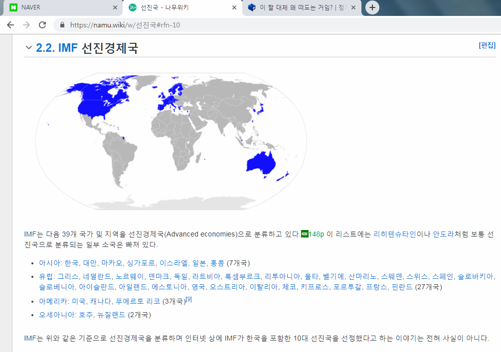 켜라위키에는 선진경제국은 맞는데 IMF에서 선정한 10대 선정 선진국은 아니라고하네. 어...이게 무슨말임? 말 그대로 한국은 선진경제국이지 선진국은 아니란거야?