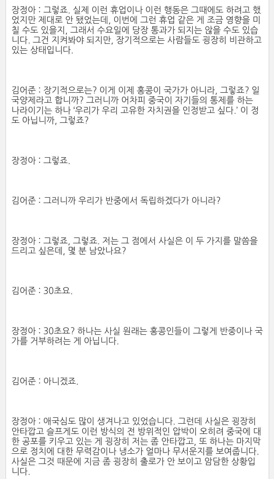 누가 찾아서 그러는데 털년도 홍콩 언급했음.