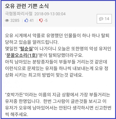 회계내역 얘기만 나오면 시간이 흘러도 작업방식은 변하질 않음 ㄸㅈ에서 자기들끼리 작업치다 본인 오유닉 발각되니 그 뒤로 사라졌던 예시 (오유닉: 날아라보드,현재 탈퇴)