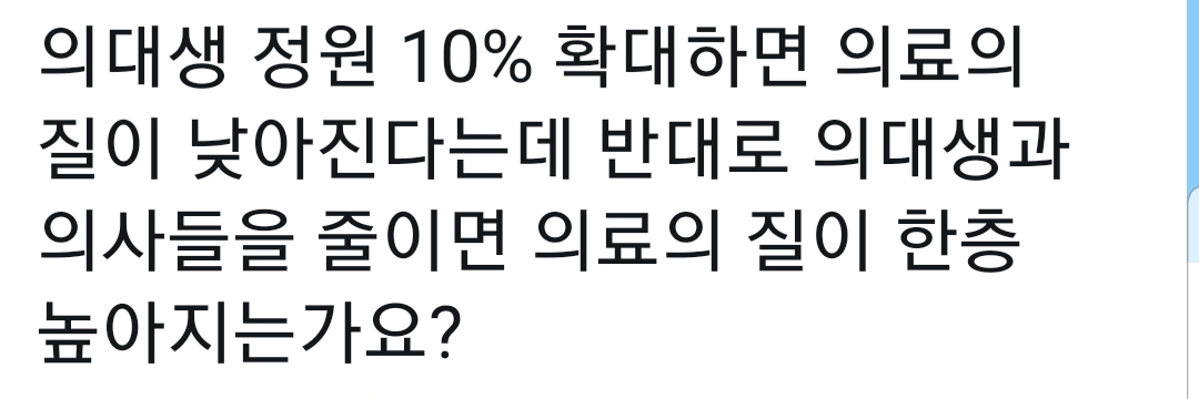 의협 논리로 하면 지금 의사 반만 다 짤라내면 의료 질이 더 높아지겠네