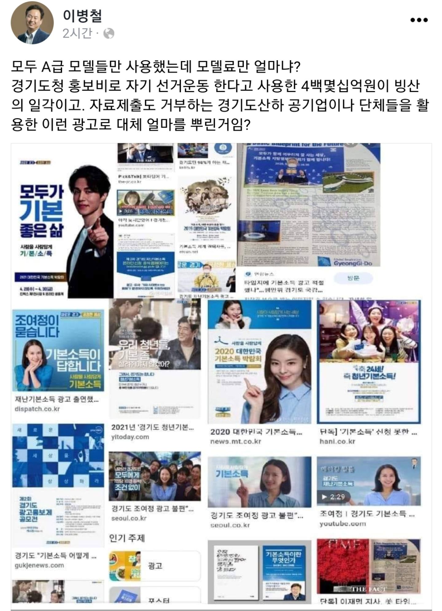 경기도가 밝힌 홍보비 예산을 아득히 초과할거 같다. 경기도랑 경기도 산하기관들 다 까야돼 | 21.08.03 14:49 | | |