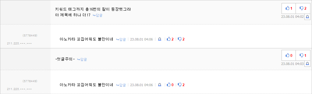 맞음. 거의 궤멸수준임 | 23.08.01 11:22 | | |
