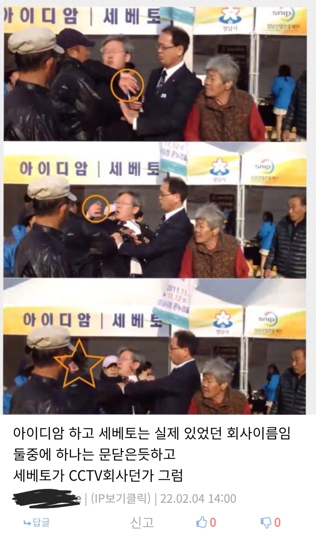 영상으로 보면 더 이상해 달려든 사람이 처음부터 멱살잡이 한건 아니고 가까이가서 몸을 밀착했는데 이재명 밀리다가 저 백스핀 블로우 날림. 그거 맞고 멱살잡이가 시작됨. 수행원이 정리하고 나니까 수행원 뒤에서 이재명이 '구속 시키도록 해!' ㅇㅈㄹ 하고 있음