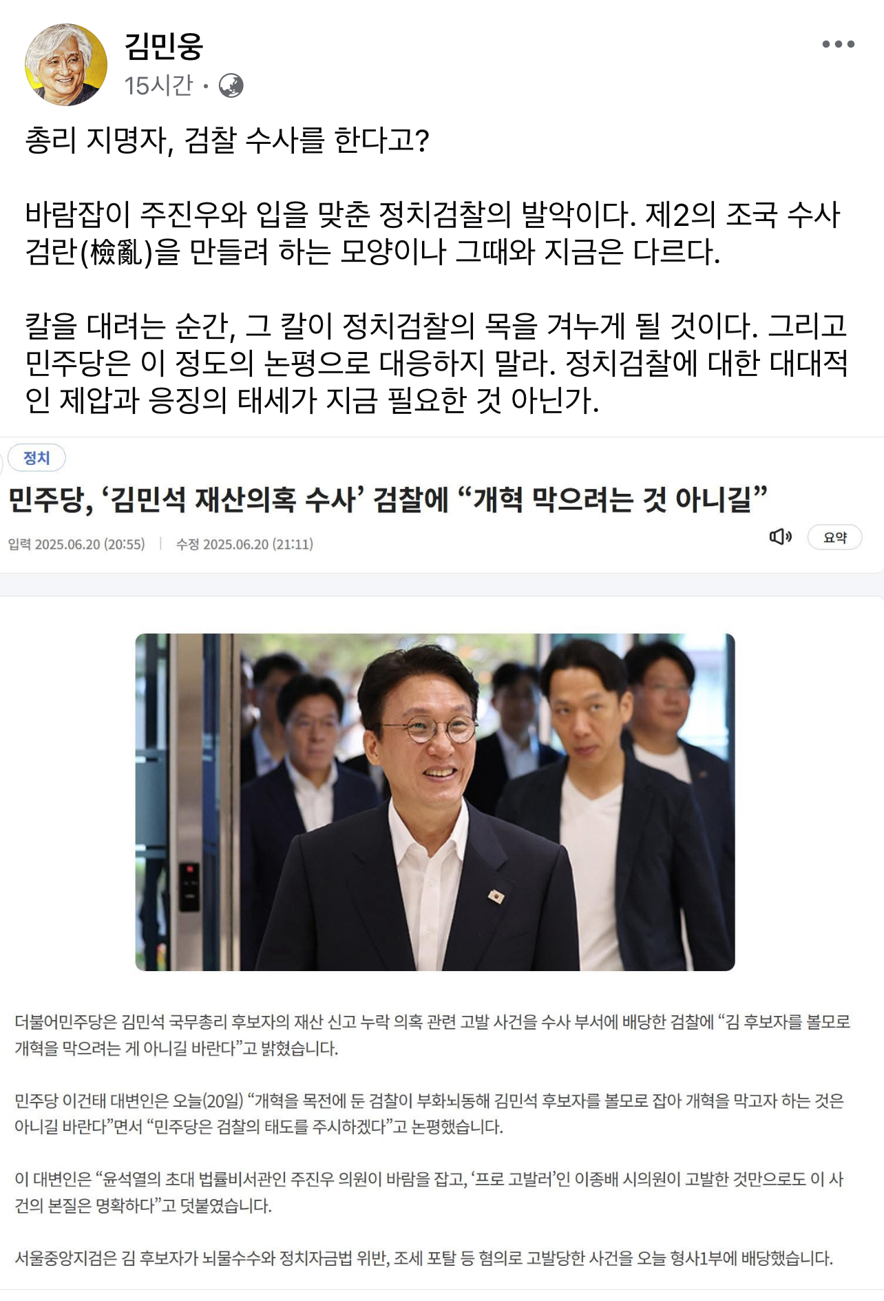 검찰은 독립 기관이야 민주당이 집권당이라고 맘대로 할 수 있으면 그걸 독재라고 하는거야 유석렬이랑 뭐가 다르냐