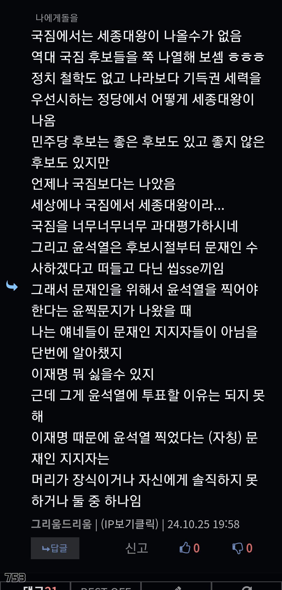 국힘에서 세종대왕 못나오는거 인정 그런데 지금민주당에서도 세종대왕은못나옴 | 25.10.11 14:41 | | |