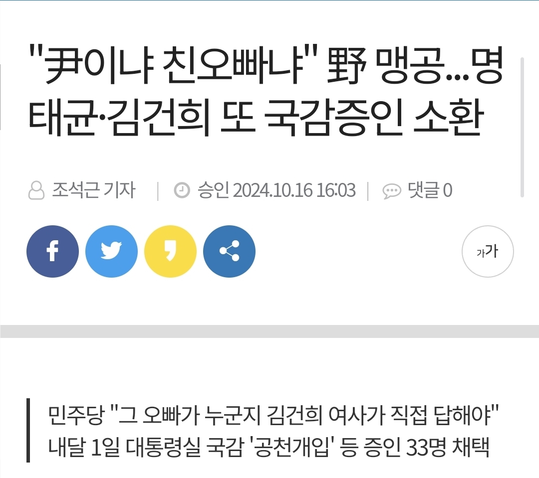 웃긴건 지들은 야당일때 이미 김건희 불렀다는 거 ㅋㅋㅋㅋㅋㅋ