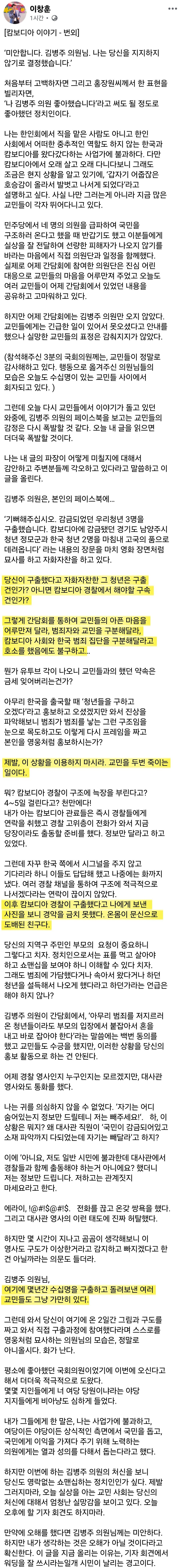 정치인 이미지 마케팅 수단으로 변질되버린 캄보디아 사태. 대중들에 어필해 자신을 홍보하는 셈이군. 예전에 세월호로 이미지 쌓던 거지박하고 똑같넹. 더불어 터진당 넘들이 국민을 바보로 알고 있구만. | 25.10.20 01:21 | | |