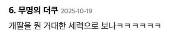 따로따로임.. 클리앙은 딴지 털천지 애들이 주력임.. 더쿠는 개딸에 조선족애들도 상당수 있음 | 25.10.20 04:43 | | |